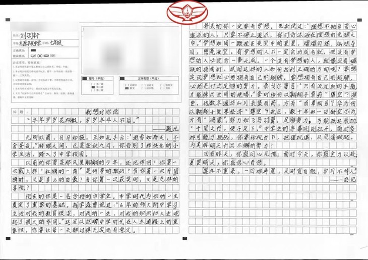 这篇散文字里行间洋溢着踏实勤勉、锐意进取的少年风采,文章跨越过去、现在、未来,以时间为序,层层递进,所想所感所悟随笔尖款款流出,小作者敞开心灵、纵横古今,剖析自我,思考生活。整散相间、流畅自如的语言中弥散着灵动的才思。相信刘羽轩同学今后不仅怀揣理想,更会追逐梦想,斗志昂扬地迎接青春的挑战!