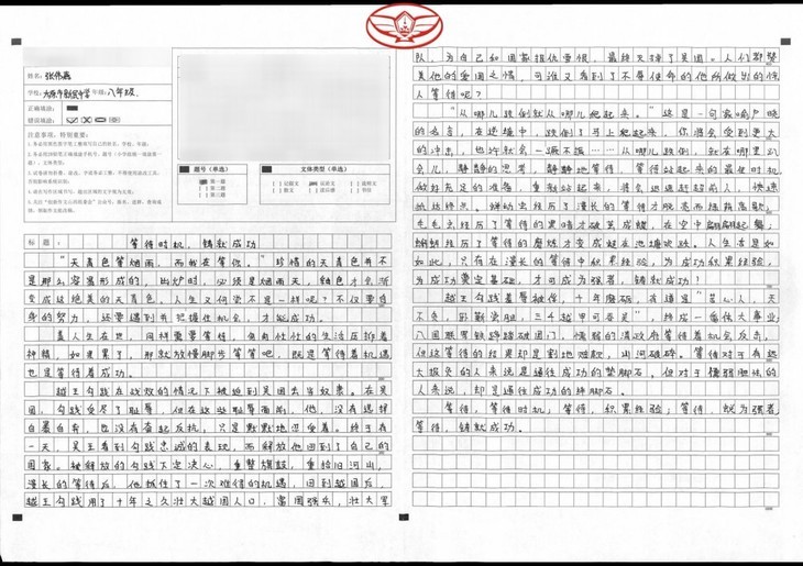 很欣慰孩子此次作文比赛能成功入围,也很荣幸作为家长分享我对孩子写作方面的体会,与大家共同探讨。其实孩子最初接触写作是比较有抵触心理的,不知该如何写,怎么用优美词汇表达自己的心中所想。通过老师对他的指导和作文训练,他开始不畏惧写作,我也总结了一下经验,和大家分享: