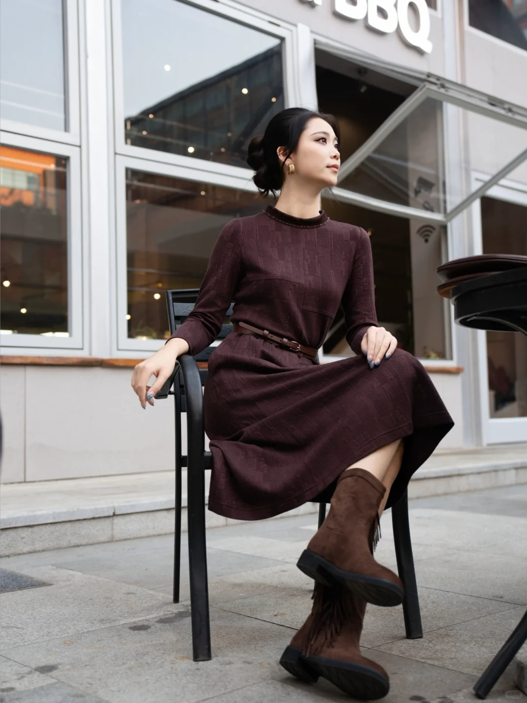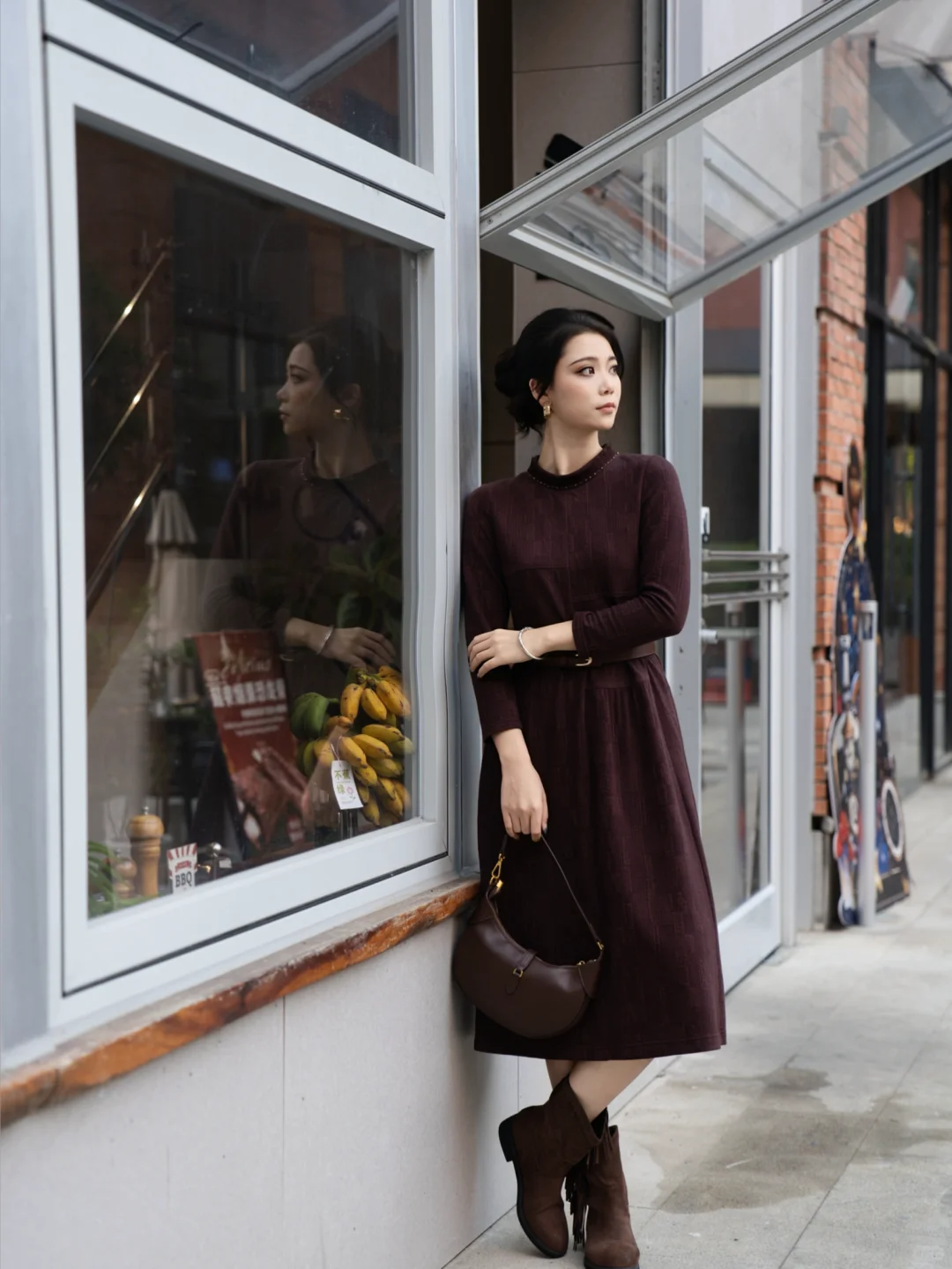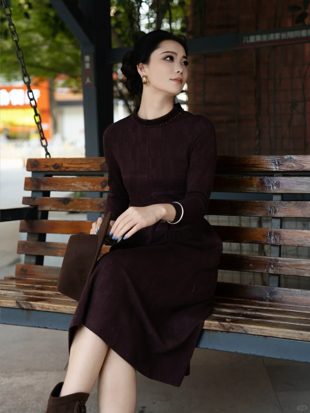 Gowani秋冬新款|西梅紫连衣裙 复古look
