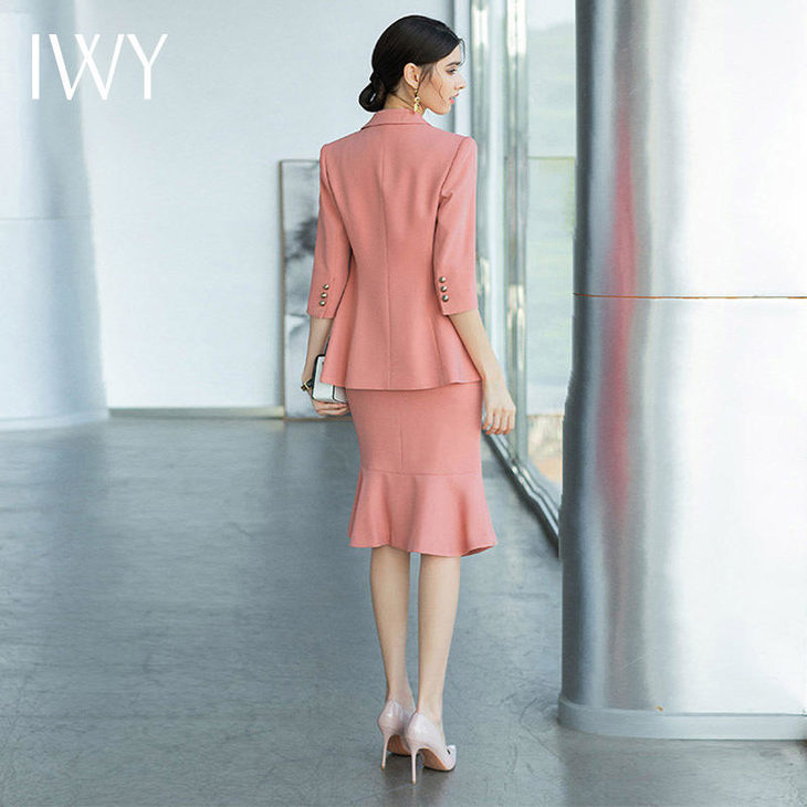 经典戗驳领和齐膝鱼尾半身裙可甜可盐
