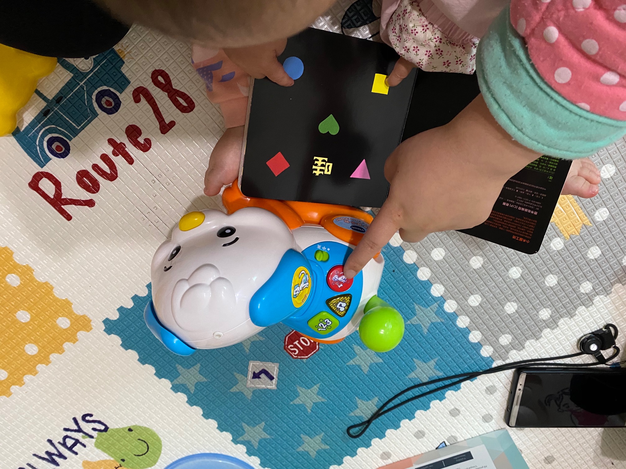 抽象的绘本,形象的玩具,同时出现在孩子眼前,一岁的娃努力的在将两者联系起来,虽然她还不会讲话,但是我可以感受到她的认真劲儿呢