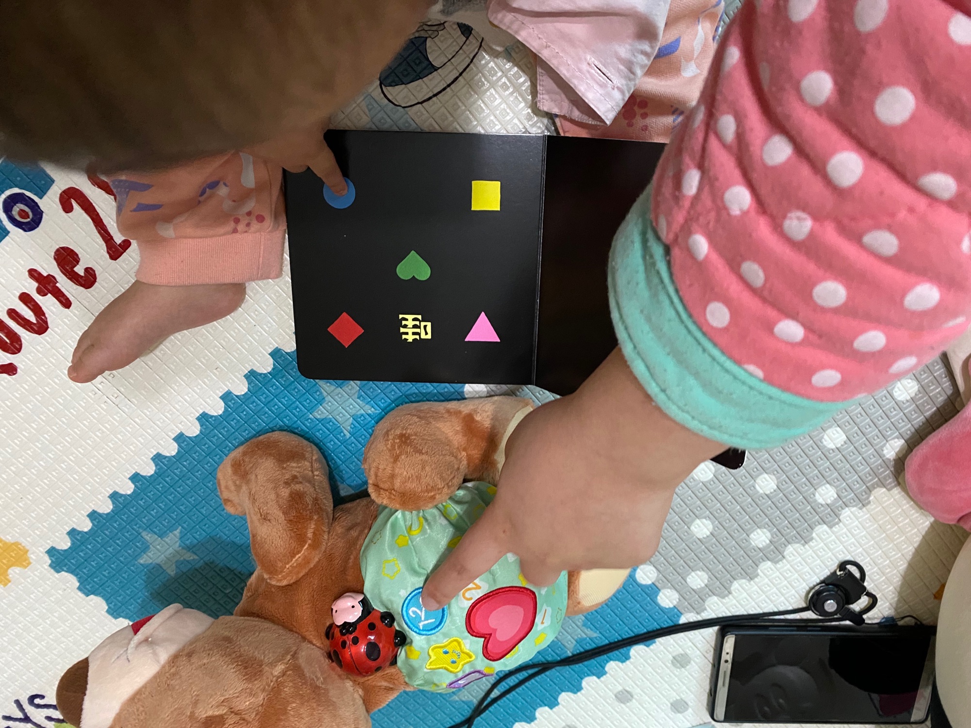 宝宝最近感觉进入了形状敏感期,会给我指被子上的心形,对于每一个形状似乎有着不一般的认知兴趣~