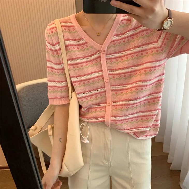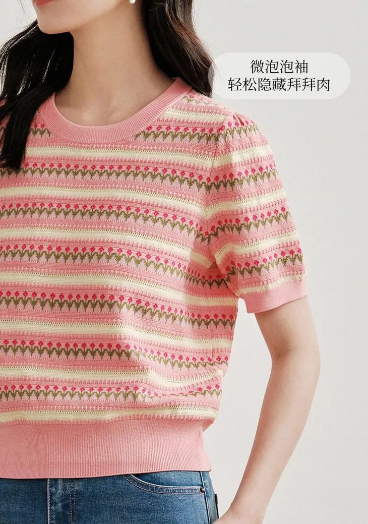 4 | 圆领短袖/V领假开衫可选,碎花图案显白增气质,法式慵懒风,温柔百搭 |