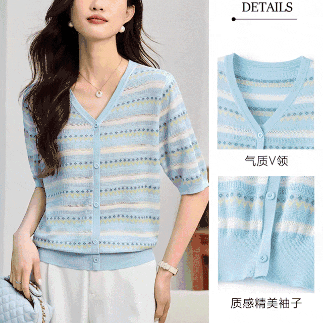 五分袖设计,V字底端也位于胸口之上,含蓄又矜贵,日常通勤上班穿也不会显得夸张~