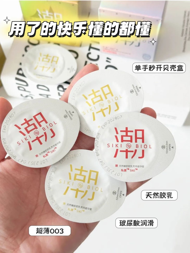 为了让套套真正从细节上保障到位,SIKI私激水薄系列套套采用铝箔复纸作为外包装的材质,加之贝壳盒防照射的材质,将紫外线挡在“门外”,套套寿命期更长,使用起来更安心!