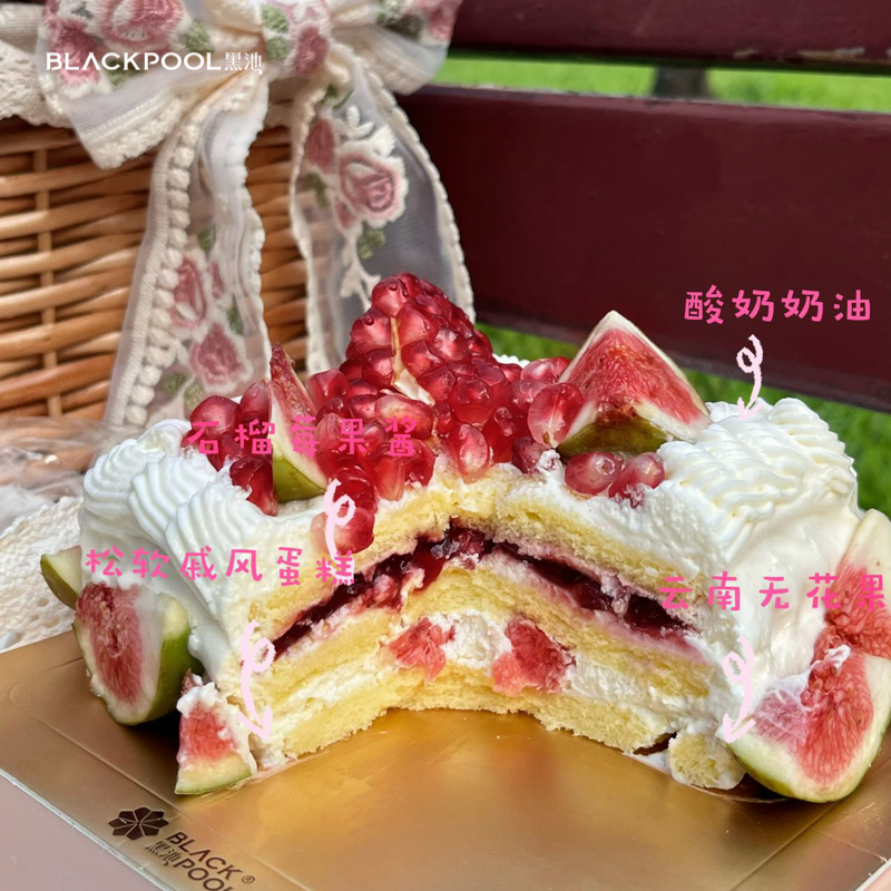 绵密的酸奶奶油…突尼斯石榴…酸甜果酱…柔软的戚风蛋糕…新鲜云南无花果…