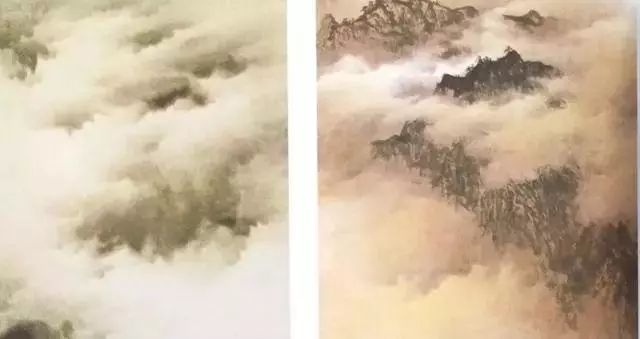 雨后云在山腰涌动的画法,雨后的云层厚重,并能迅速移动,画时注意山和云的衔接处要自然结合,色调要一致,云要揉合统一。