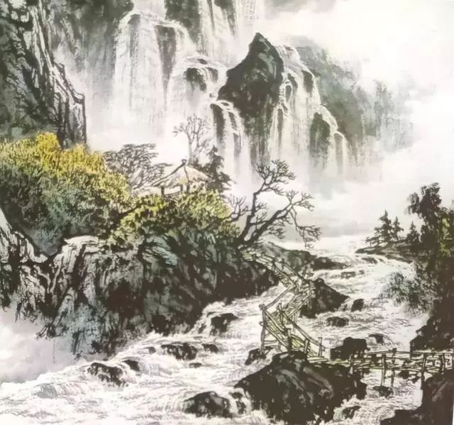 作为山水画中的水,那它的重要性就更不用说了。宋代大画家郭熙说:“山以水为血脉,以草木为毛发,以烟云为神采。故山得水而活,得草木而华,得烟云而秀媚。”水的形态也很多,有静止的、有流动的、有奔腾的、有飞流直下的、有咆哮怒吼的等等。从色彩来看,有红色的、有黄色的、有绿色的、有蓝色的等等。水没有固定的形状,但是由于周围环境和四时气候的不同,水会产生多种多样的变化,因而也就有了多种多样的画法。
