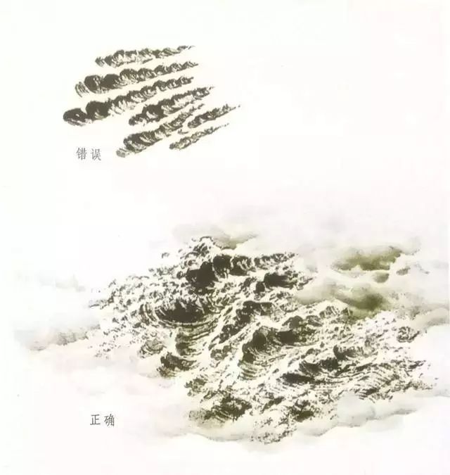 云海的法,云海多出现在高山顶部,或者在飞机上看到的。云层多变化,就像海浪一样通动,飘浮不定。画云海时以横线条为主,注意线条之间要有变化,切忌生硬呆板。
