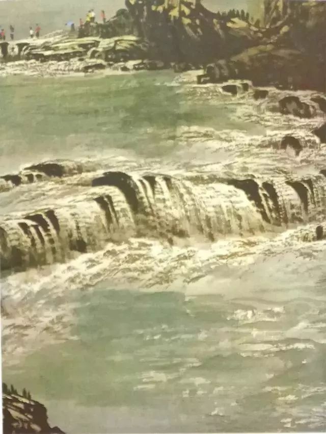 画壶口瀑布的构图时,应将画面中水流的动感充分表现出来使整体感觉更有生气。