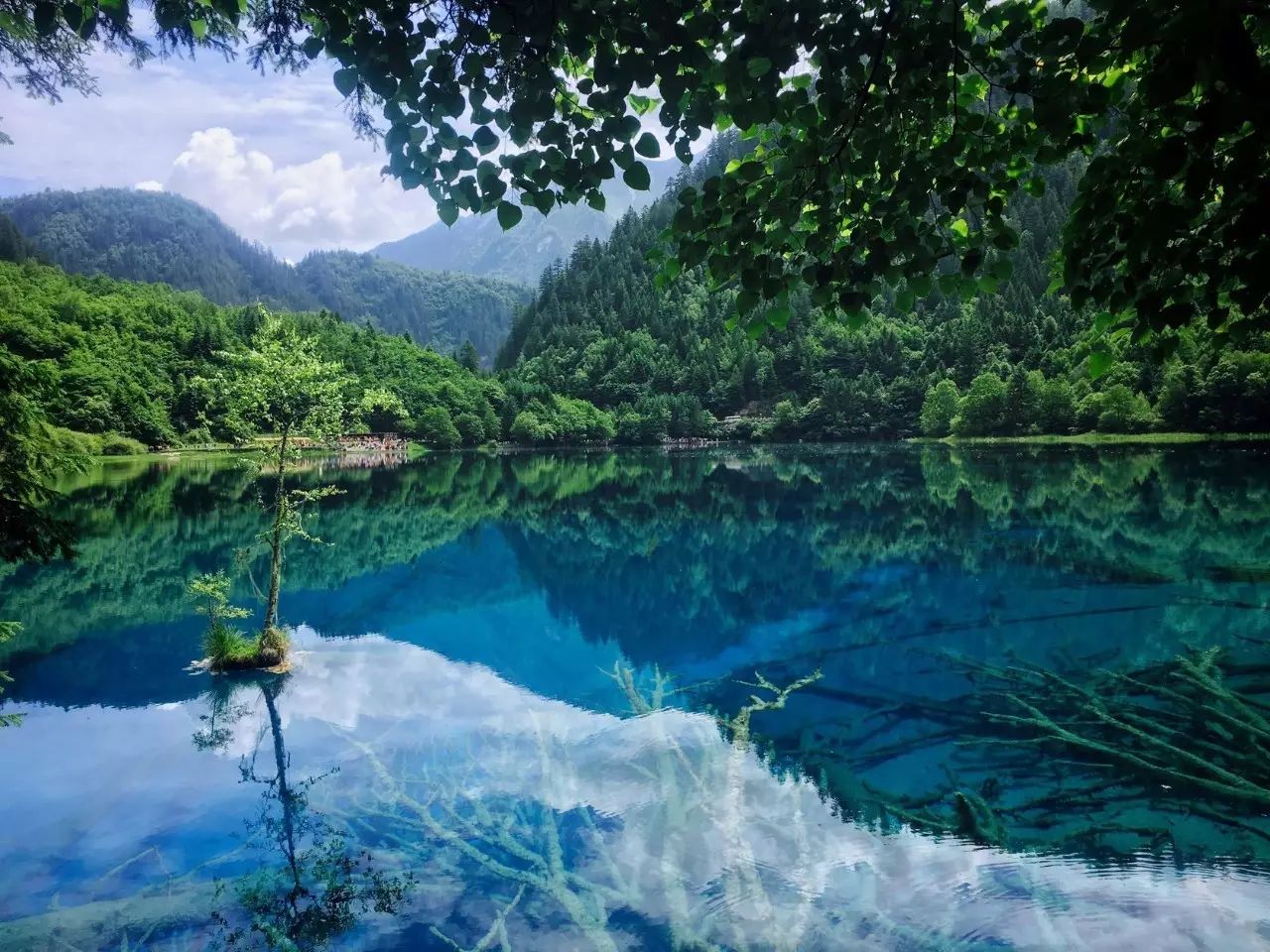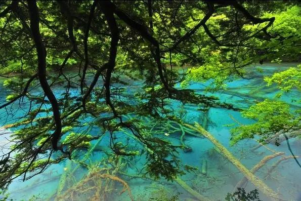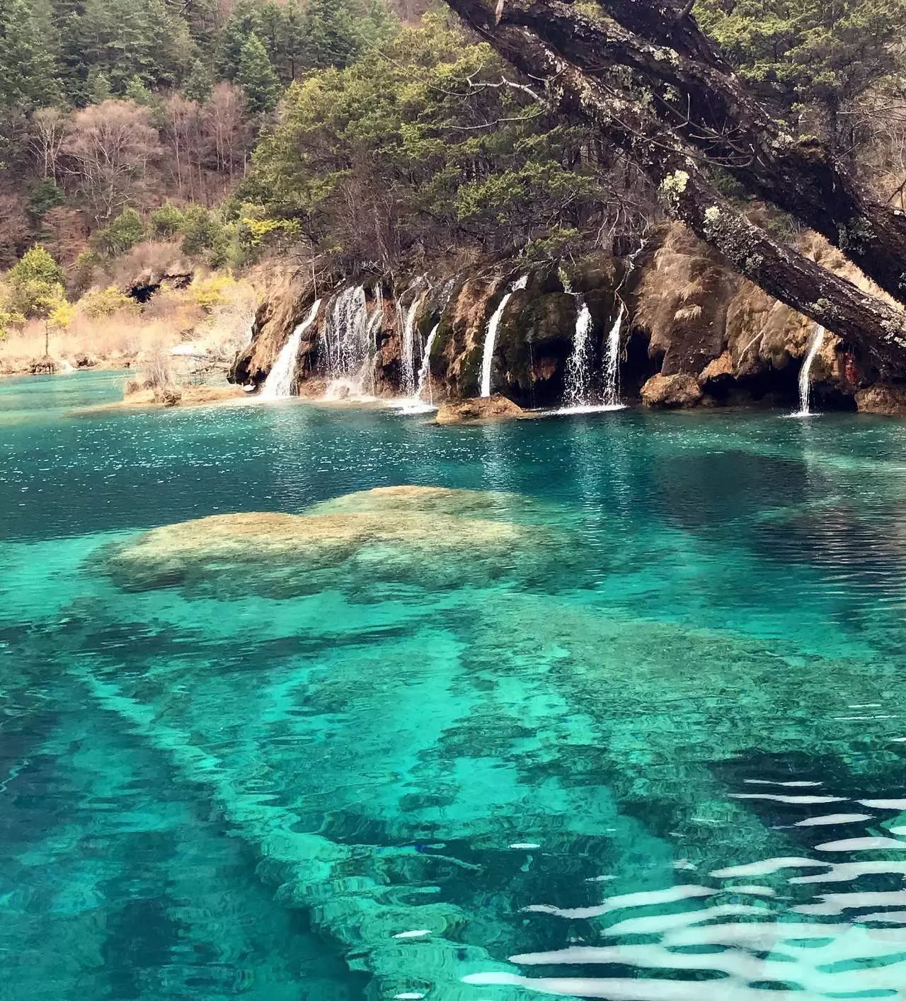 湖水自上而下翻堤而过,在树丛中穿行,形成一道道宽坦的瀑布,有着一种“树在水里长,水在林中流”的即视感,被称为“九寨沟的缩影”。