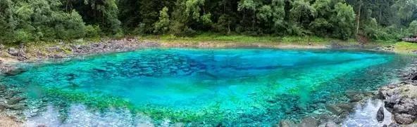 熊猫海是冰川堰塞湖,水位随季节不同而变化明显,据说由于熊猫都喜欢在这里嬉水而得名熊猫海。尽管是阴天来,依旧可以看到它原有的美艳景色,所以一大早来这里,能享受到最静谧的空间。