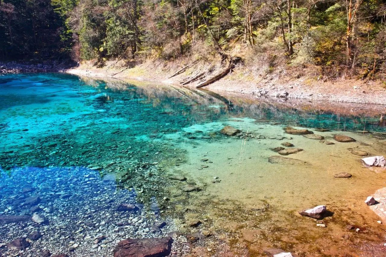 五花海可说是九寨沟里最有人气的海子。湖水在阳光的照射下,颜色更为鲜艳,各种翠绿、橙黄、浅红......似无数块镶嵌的宝石,令人迷醉其中。