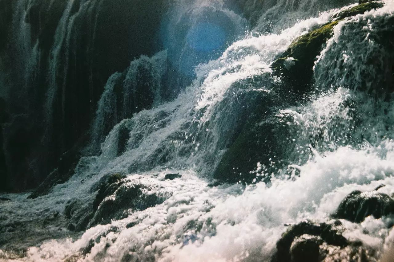 小时候看的《西游记》,片尾曲的背景瀑布正是取景于九寨的珍珠瀑布。珍珠滩上沿坡而下的激流飞流直下,撞击在坑洞上,溅起无数朵水花,临近中午时段来,点点水珠在阳光下宛如散落的珍珠。