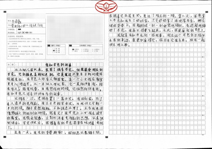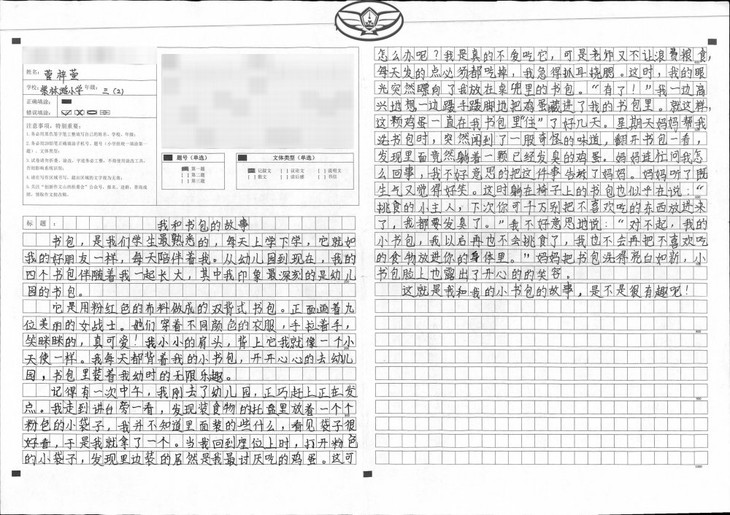 当老师布置了我和书包的故事后,我认真回顾了从幼儿园上学以来,用了很多书包,选了印象较深的我和书包发生的事情,进行了详细的描写。