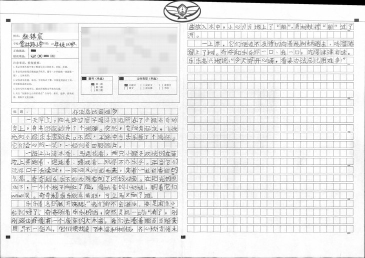 看到这四幅图画时,我首先仔细观察,弄清楚这四幅图的主要内容。然后,我想到了妈妈平时给我讲过的小故事,每次讲完后,妈妈都会问我这个故事想要告诉我们什么?于是,我又琢磨通过我的笔能带给大家哪些启示,所以题目命名为“办法总比困难多”,告诉我们无论遇到什么困难,都要想尽一切办法去解决问题。最后,我想到了绘本故事,结合绘本故事去构想,努力让大家看到我的作文就能想到图中的画面。