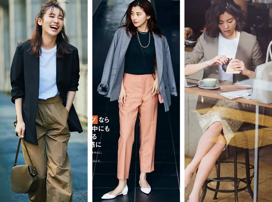 还能搭配裙子,甜、酷、辣……任何风格随时切换。 如果临时遇到重要场合,穿西装内搭T恤也不拉垮。