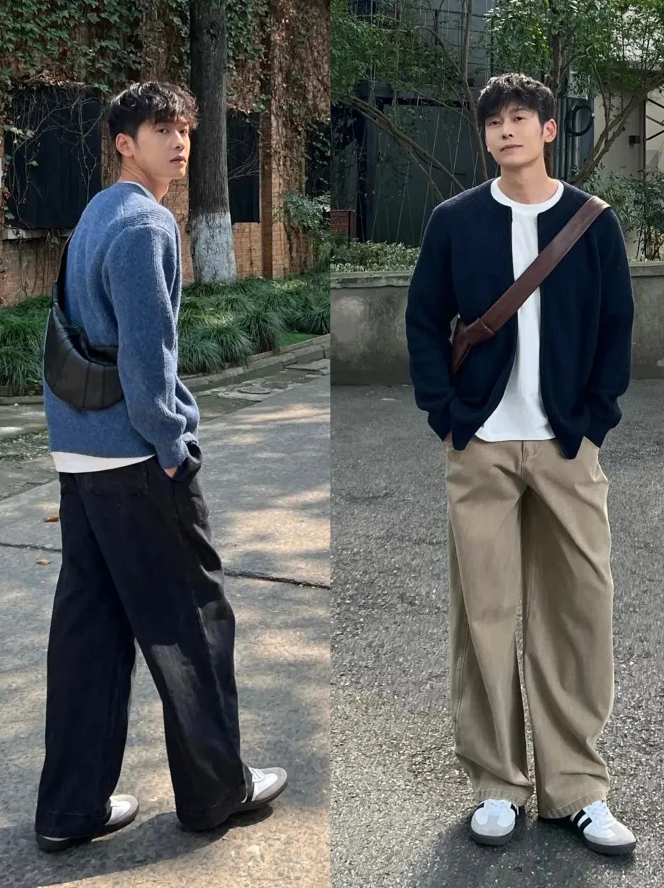 小哥哥、小姐姐们大衣外套里面穿一件万能打底衫,好看又不失温度。