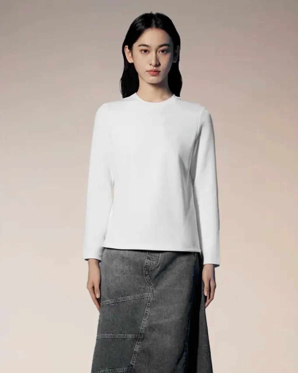 但是长袖T恤,要穿起来精神显瘦,比短袖还考验版型~ 在设计上添加了许多变美、显瘦的小心机。