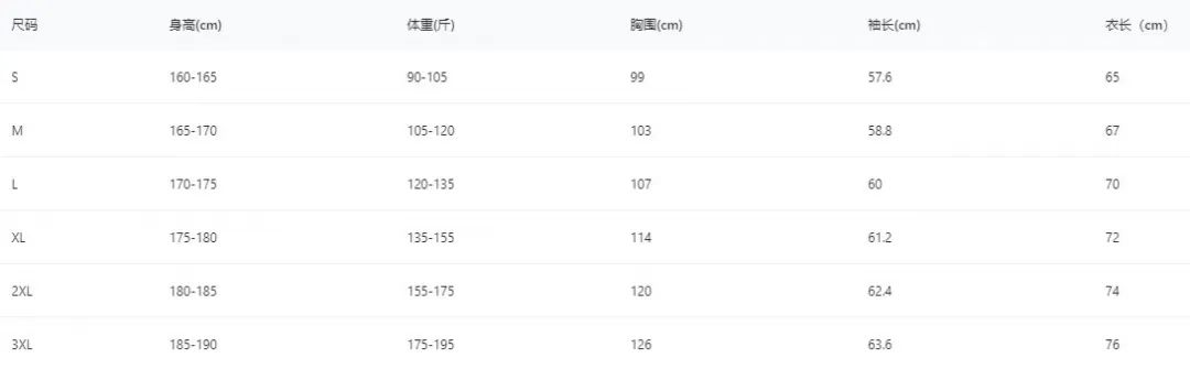 码数也给大家整齐全了,S-3XL码,90-195 斤的人都能穿~