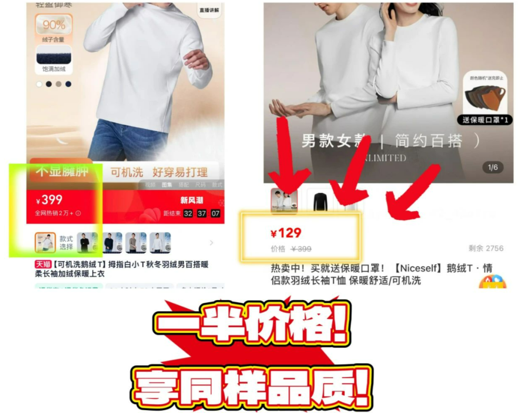 一件抗寒冬,实力保暖 起初,选品在给我们介绍这件羽绒T的时候,我还以为是智商税产品。 但看到样品后,我啪啪打脸了,这品还真的有点儿东西~