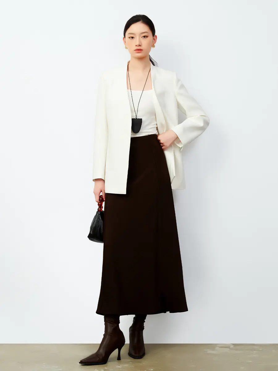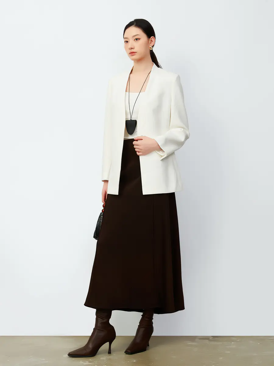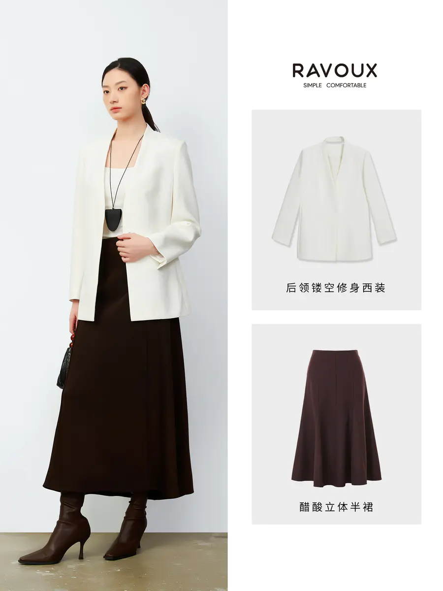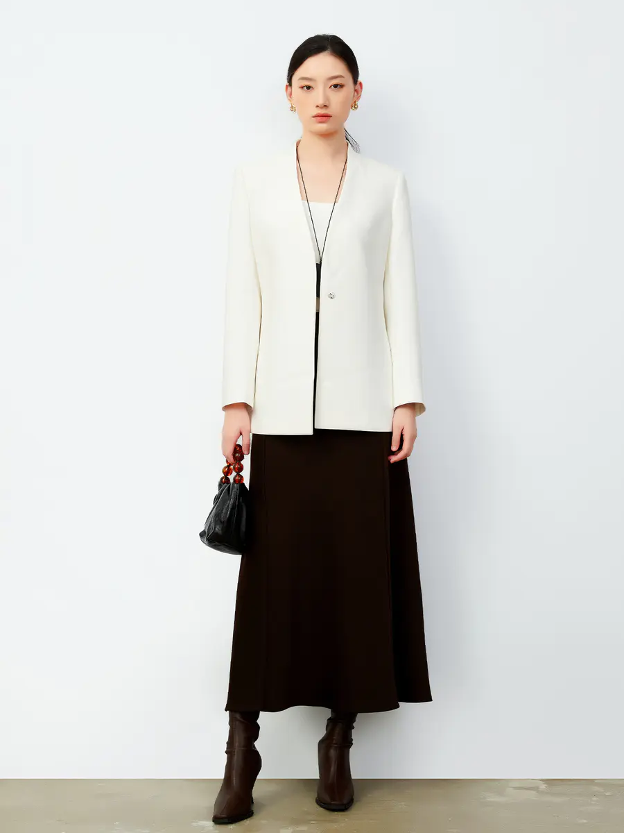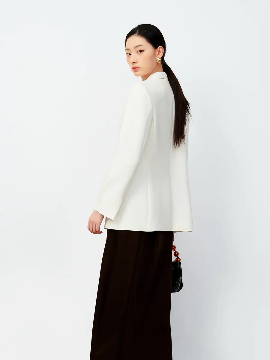 简约奶油白后领镂空西装外套|大女主衣橱