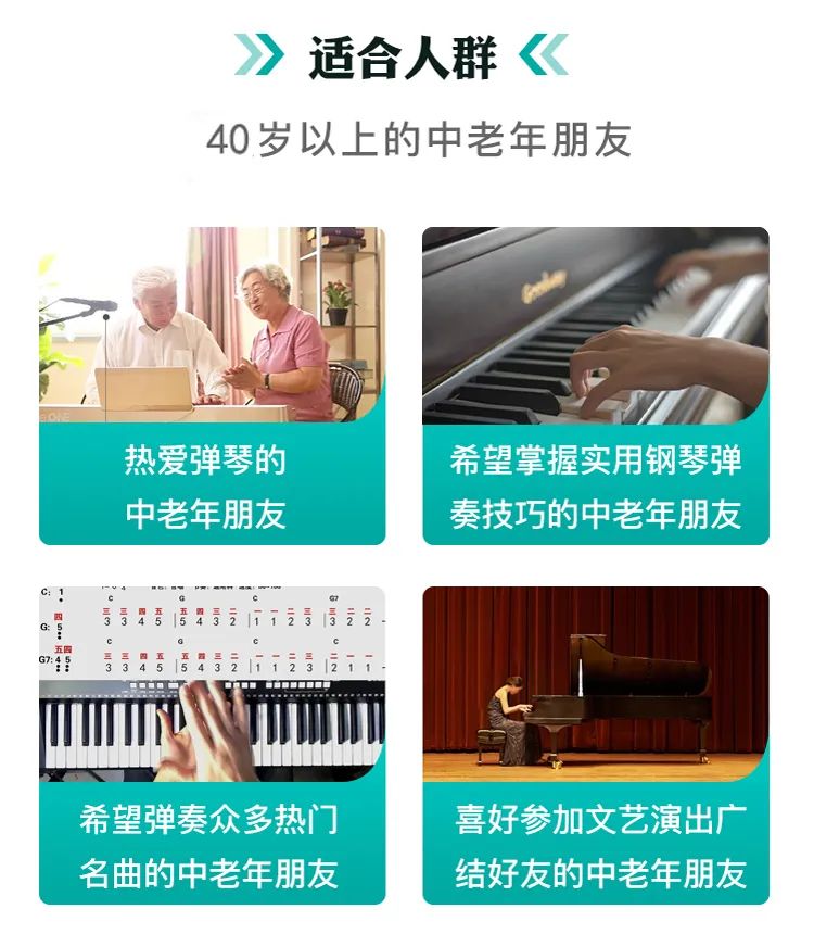 40岁以上的中老年朋友都可进群免费听课!本次课程主要是培养兴趣,并非要一跃成为“郎朗”,在锻炼动手能力的同时,还能让您的身体保持在一个合理、健康、平衡的状态,从而达到修身养性、益寿延年的作用!