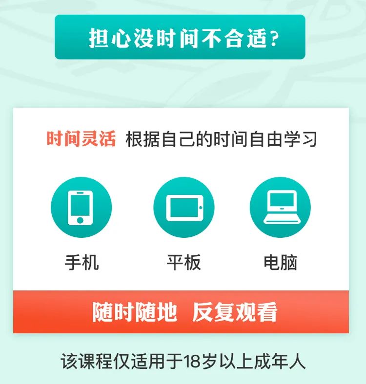 想要学习却担心没时间?完全不需要有这个顾虑!8节课都属于纯线上课程,您只要有手机、平板、电脑其中一种电子产品即可听课,随时随地听,随时随地练!