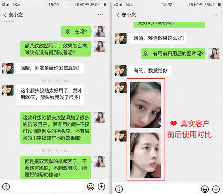 使用额头贴前后对比