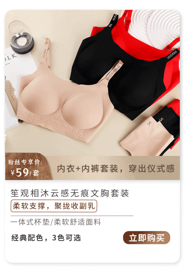 这款无痕内衣套装品牌零售价299/套,我们回馈粉丝,给大家谈下的价格是:59元/套,直降200+元!