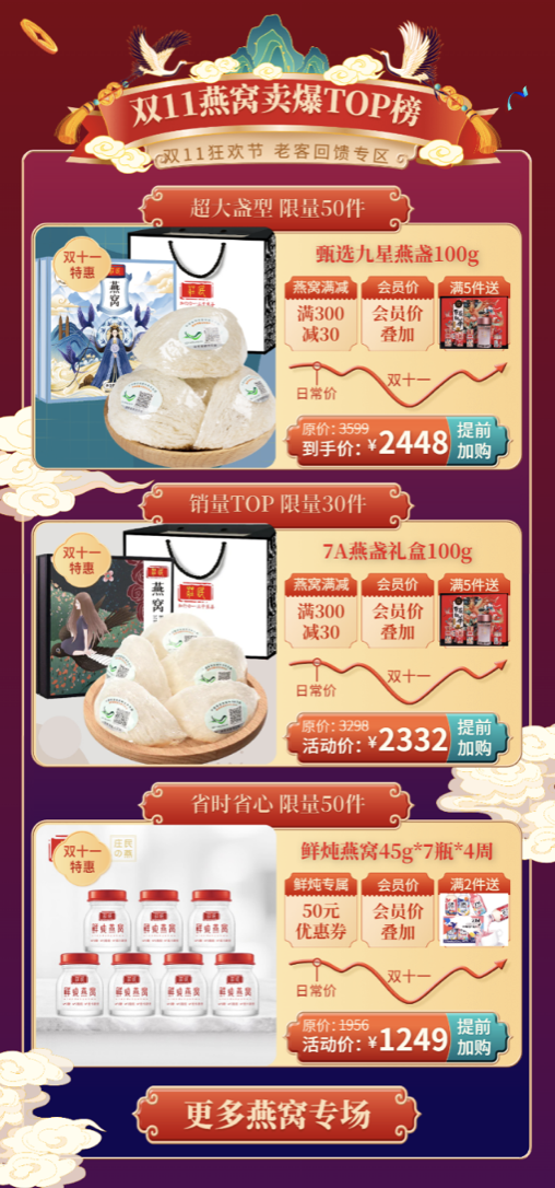 2.满30000元送价值3999元尊御燕窝虫草礼盒,限量发售