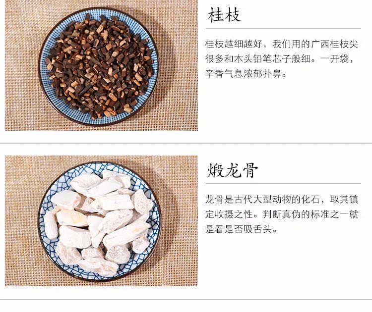 比如其中用到的龙骨,是埋在地下多少万年的动物化石,现在很多商家是用猪的大骨头做个化学处理来冒充的,怎么能起到治病效果呢?我们用的龙骨是几百元一斤的真龙骨,可以吸舌头,力度很大!