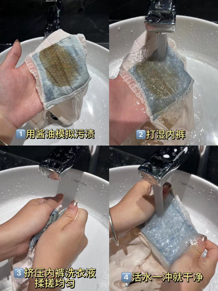 用肥皂洗的内裤总是洗着洗着就很快发硬发黄,后来换了普通洗衣液,也照样洗不干净黄黄的印痕,还有各种污渍脏东西藏在内内边边角角,尤其是女孩子生理期污渍弄上去,手搓红了都搓不掉不说,🦠还依旧在上面猖狂