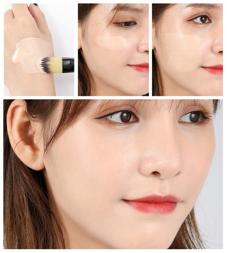 高遮瑕的粉底液可以搭配粉底刷,上脸就像抛光一样,遮盖住各种瑕疵不说,也没有常见的厚重假面感。
