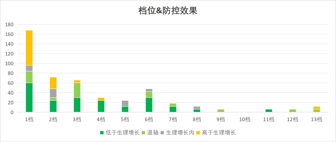 当前防控效果不佳(高于生理增长)的客户,使用档位平均值仅为1.5档;
