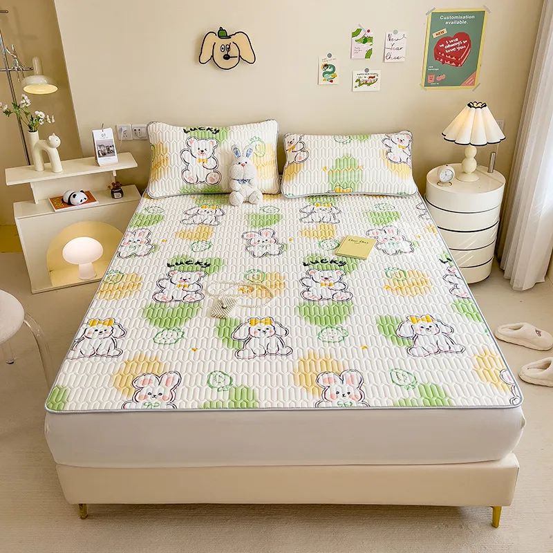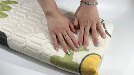 它是三层结构设计,表层凉感丝面料+中间整张乳胶填充+底部防滑颗粒,席面松软不塌、凉而不冰,躺上去就有种走进空调间的感觉,驱散体内所有热气。
