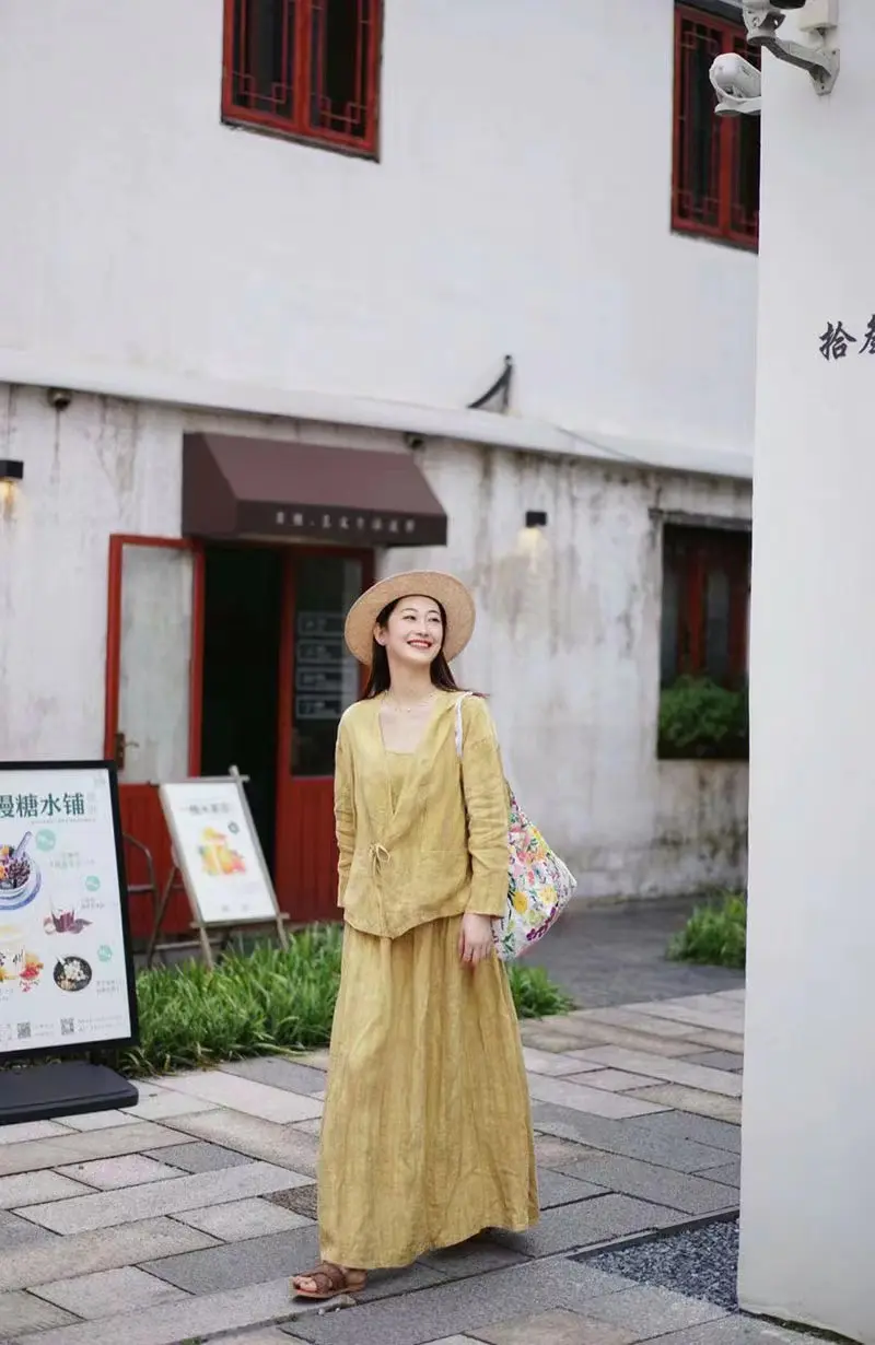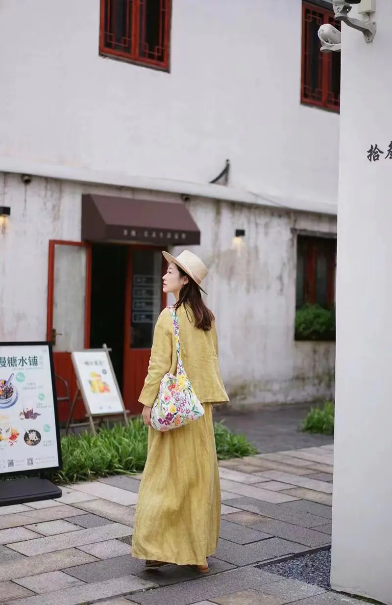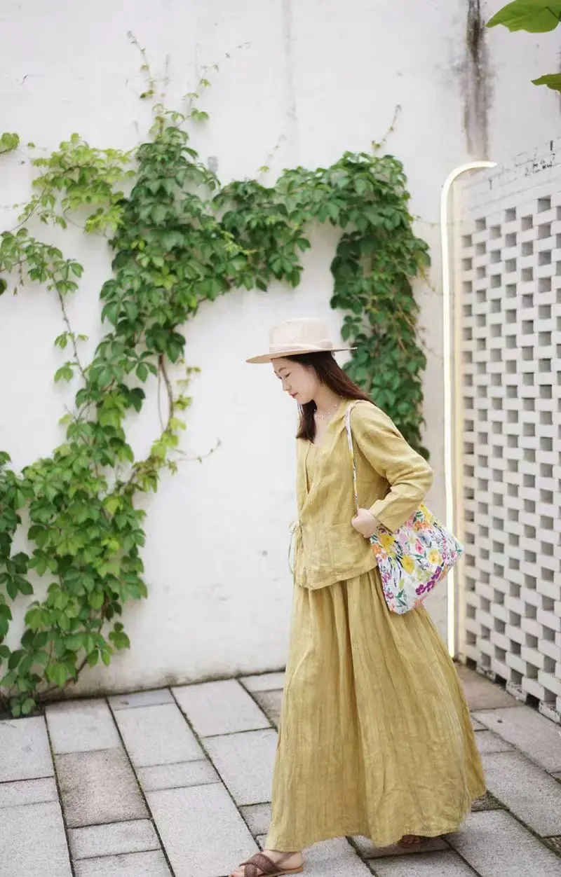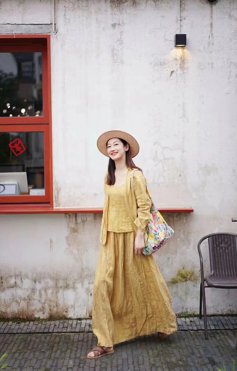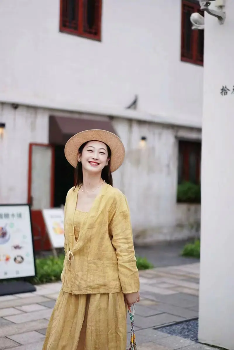 亚麻的套装真的是自带松弛感呢,搭配温柔治愈的黄色,绽放一整个夏天呢