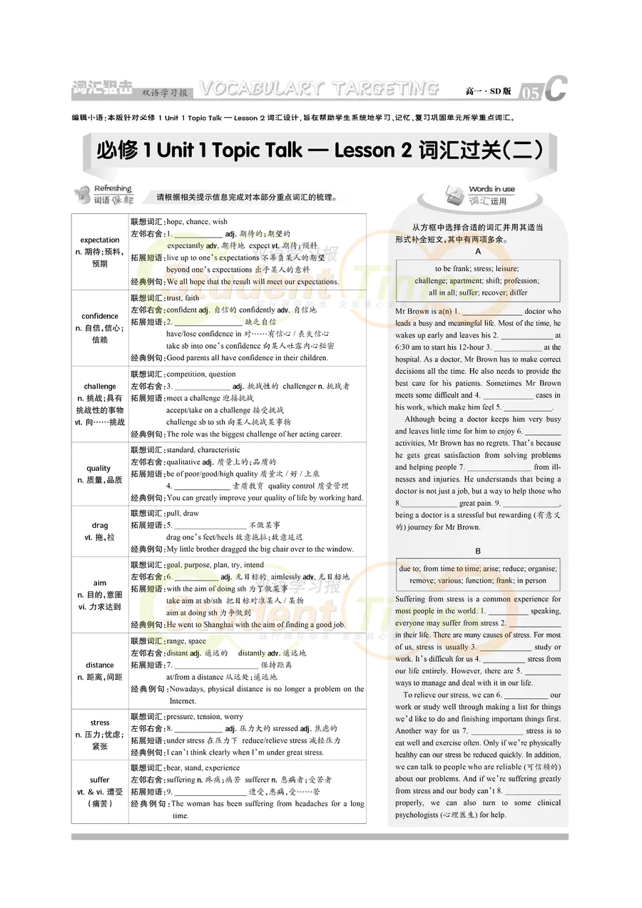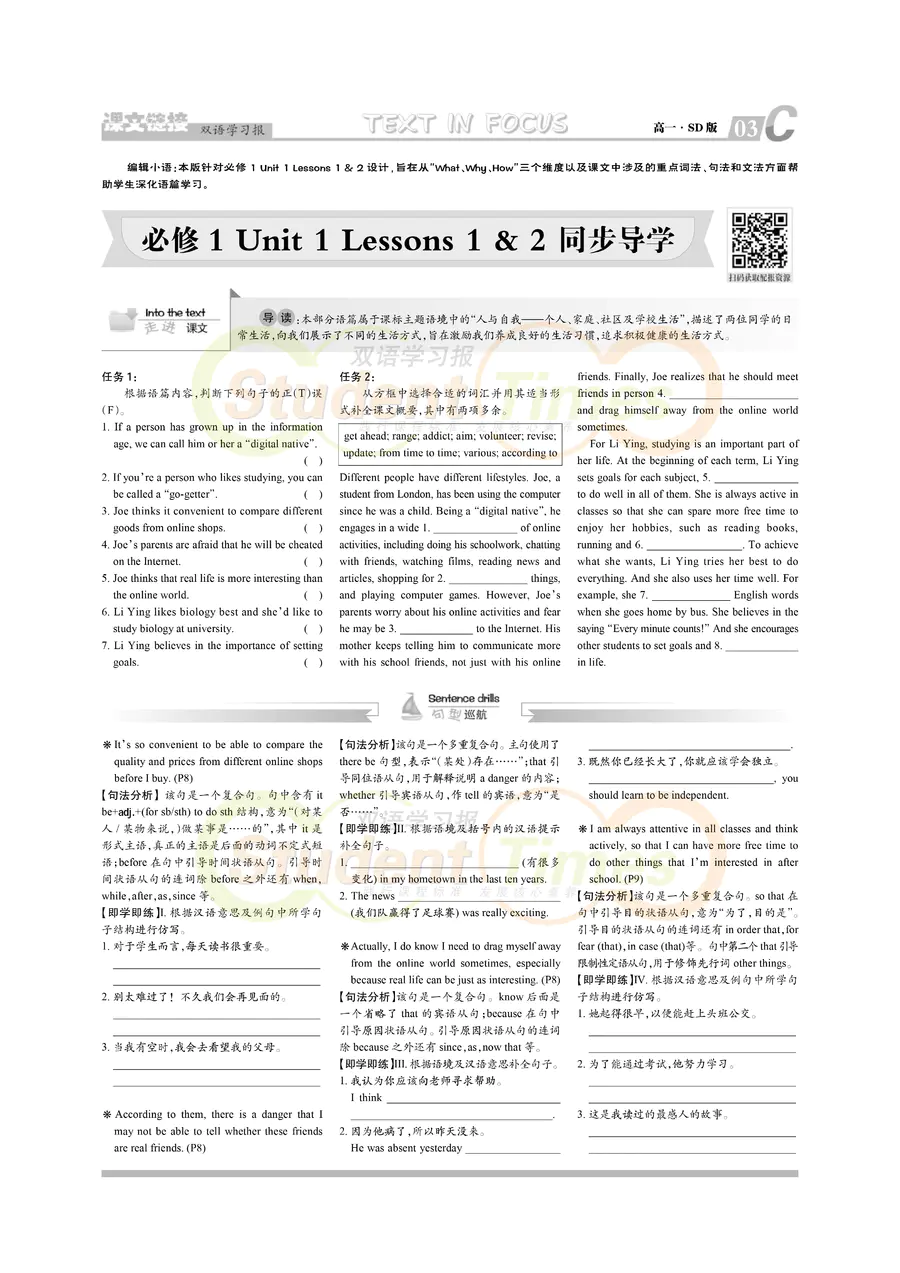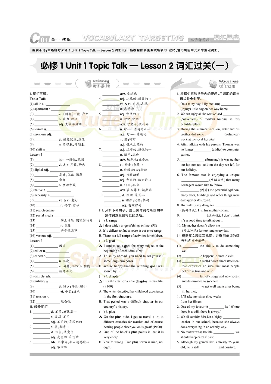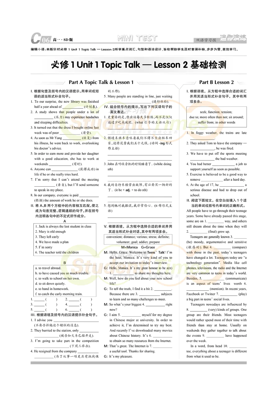 高一 SD版同步辅导 C刊(上学期)