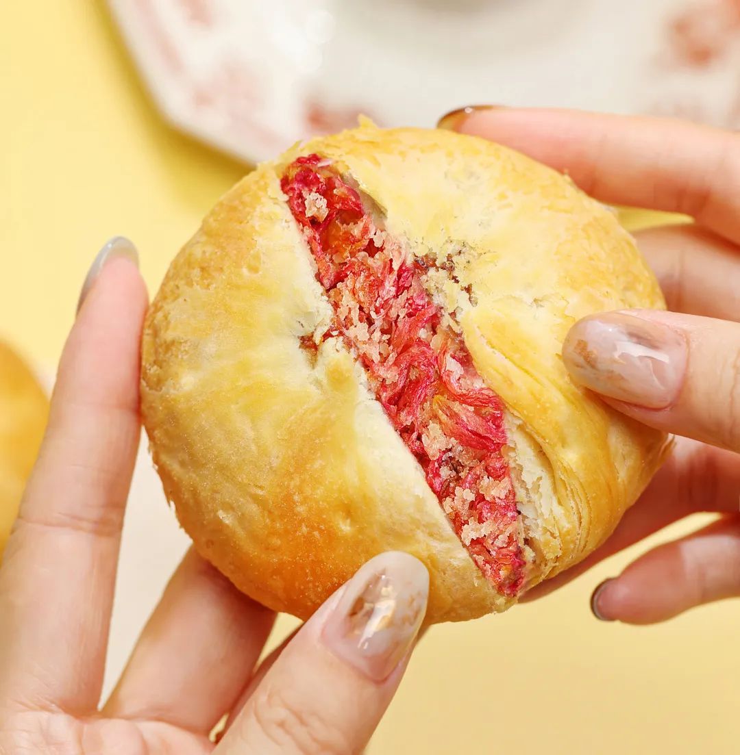 咬一口酥脆的玫瑰鲜花饼,满口沁人心脾的芳香,就像千万朵玫瑰在嘴中盛开,即便是吃完之后依然觉得嘴里弥漫着那股清新香甜,仿佛要在唇齿间绽放出一朵玫瑰花来~~