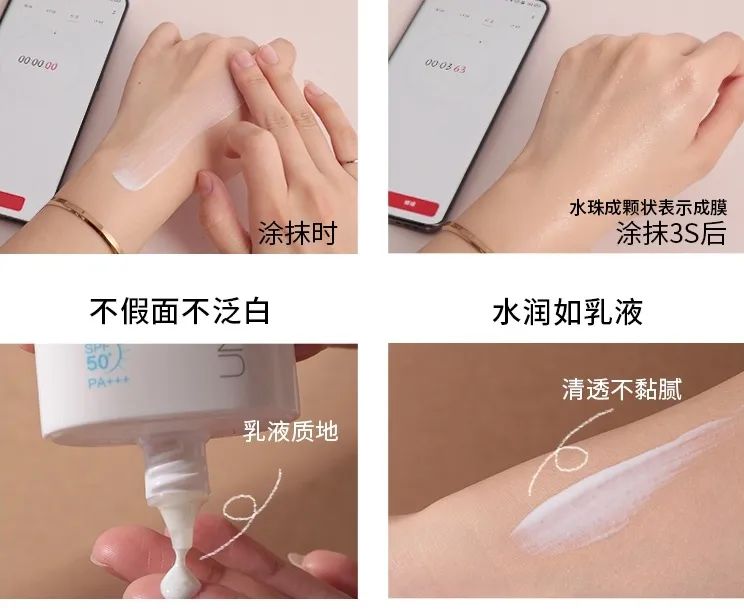 闷痘、假白、粘腻、斑驳通通都不存在,完全秒杀各种大牌防晒~