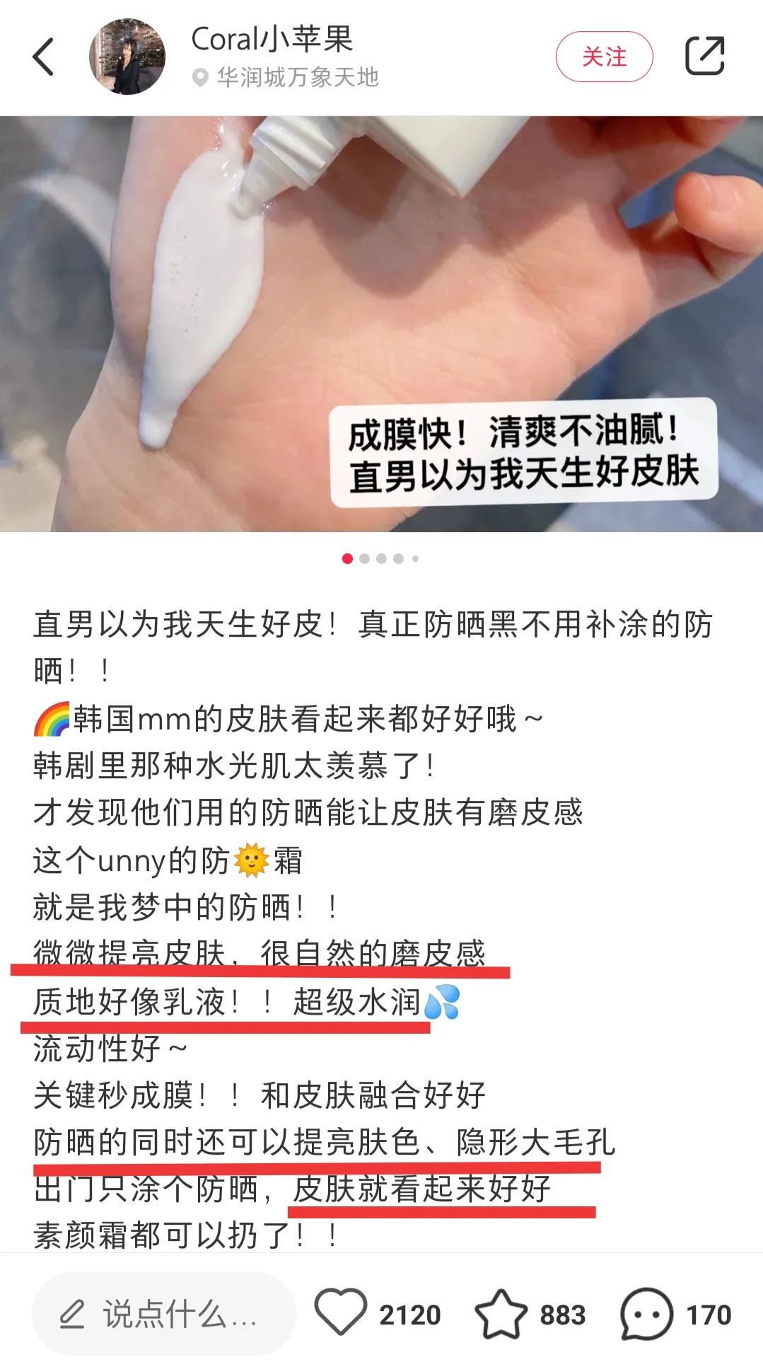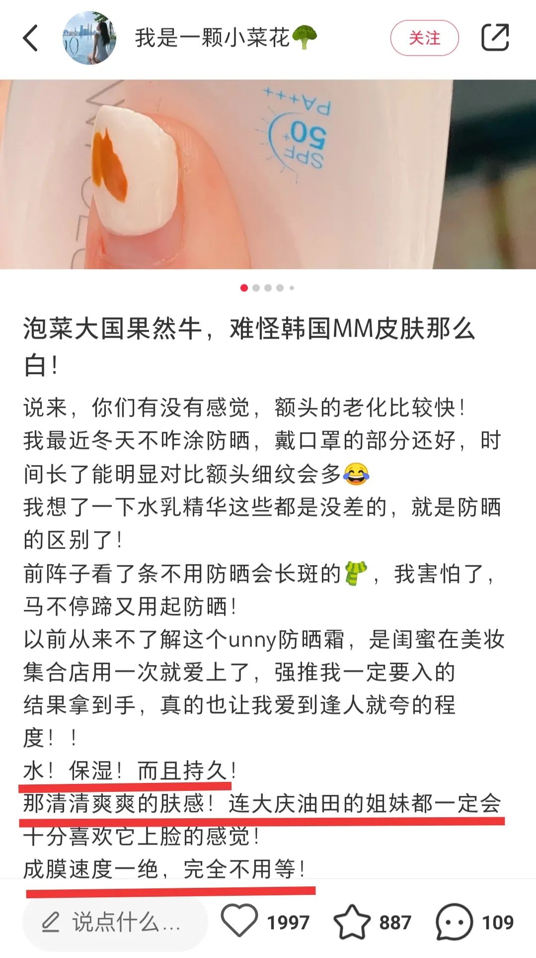 若说完全取代妆前那也没那么夸张,但确实UNNY相比同价位甚至更高价位的防晒,对后续底妆都融合的更好,不会降低底妆感的细腻度,甚至辅助增加了一些柔焦感,很NICE!