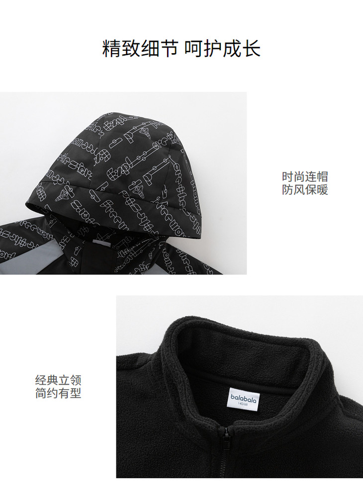 巴拉巴拉男童外套2022新款秋装儿童外套上衣两件套连帽防风时尚潮