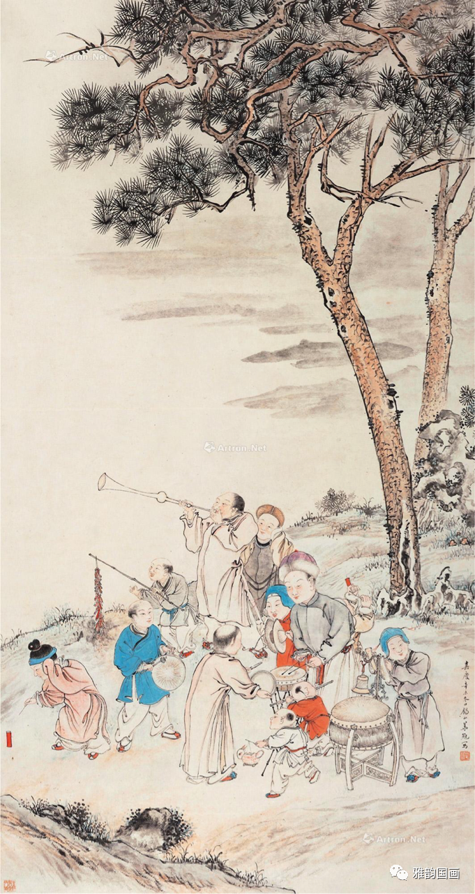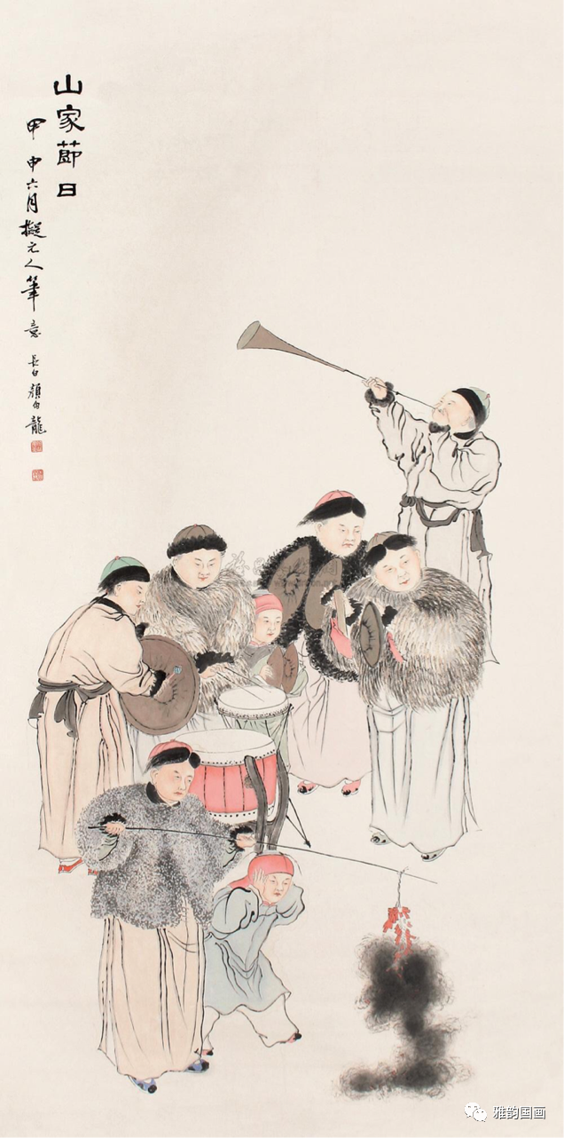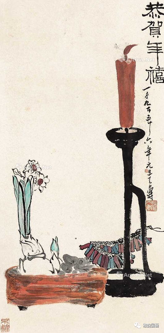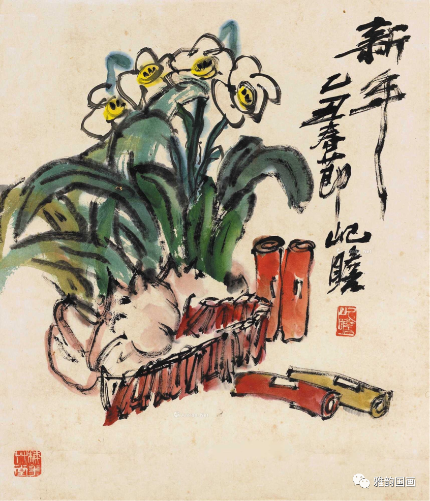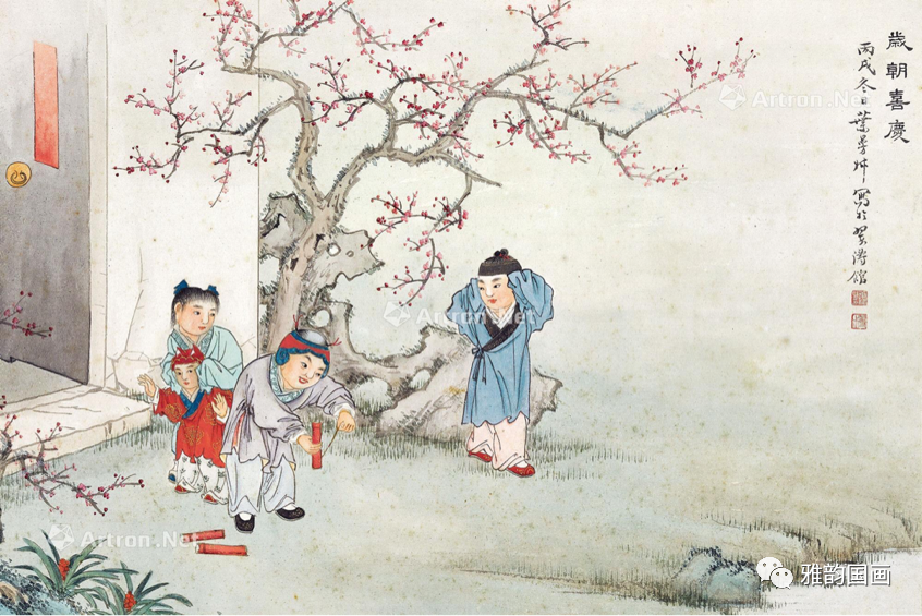 新年,人们会在春节张灯结彩,附上对来年生活的美好祝愿。让我们一起欣赏国画大师是如何描绘这富有美好寓意的新年场景。