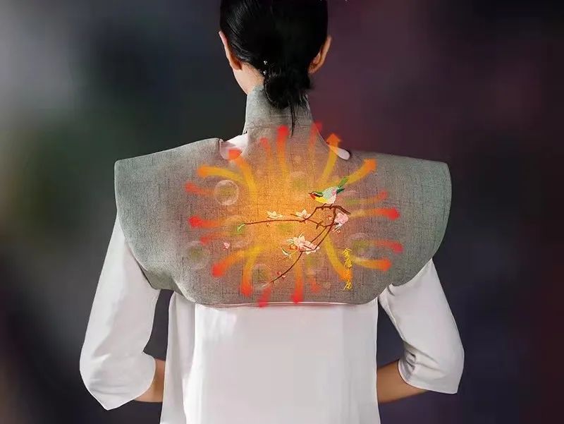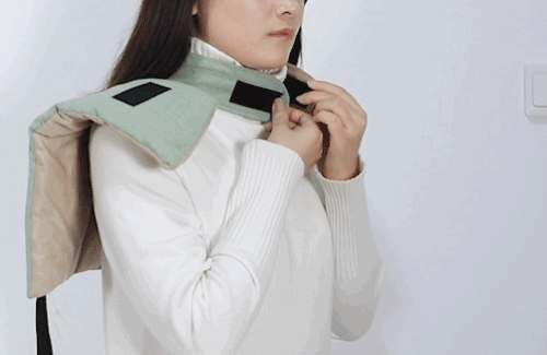 披在肩上,打开开关,10分钟即可加热至40℃+,闻着淡淡的艾香,感受着药效源源不断传入体内,穿过表皮层,直达皮下组织。