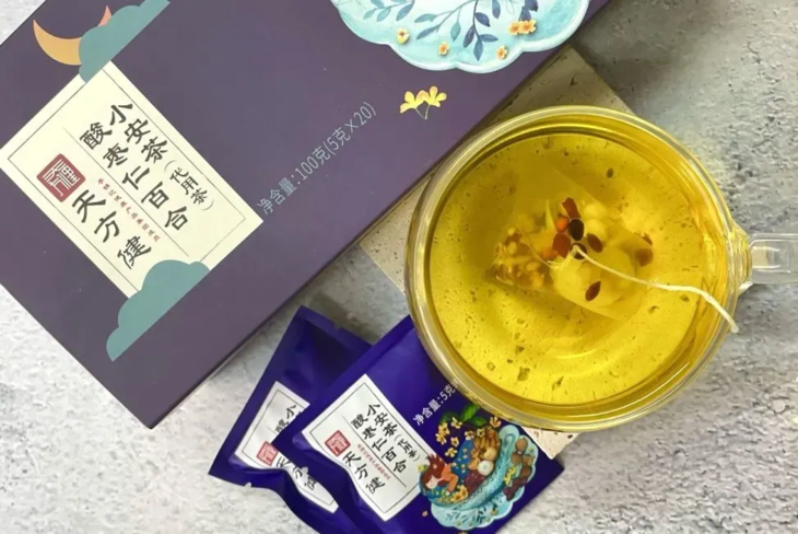 「酸枣仁百合小安茶」以酸枣仁为主,占比高达茶方净含量的五分之一,还加入龙眼肉、莲子、大枣、百合、茯苓、大麦、栀子、桂花,具有宁心安神、调理五脏之效,可协助提升睡眠质量!