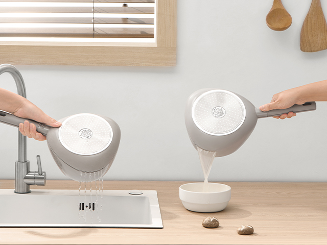一般的奶锅使用都是单向导流口,悦味小奶锅采用贴心的双向导流,并且是滤水口,倒汤滤水超方便~