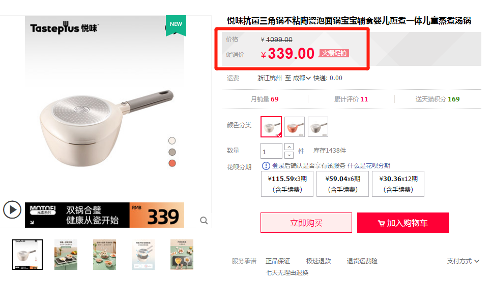 悦味官方价格:339元