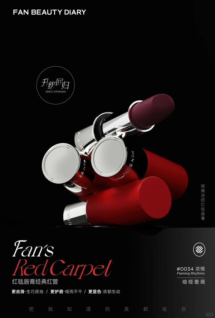 Fan's Red Carpet 瞩目气场,骄傲绽放❤️。浓情现已上架,即刻选购范小姐同款红毯绝色。#fanbeauty#新品上市#口红#唇膏