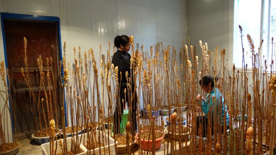 植株距离要保持在2米以上,保证有足够的营养。开花后的天麻要进行人工授粉,一颗颗授粉,一天要重复这个过程上千次。