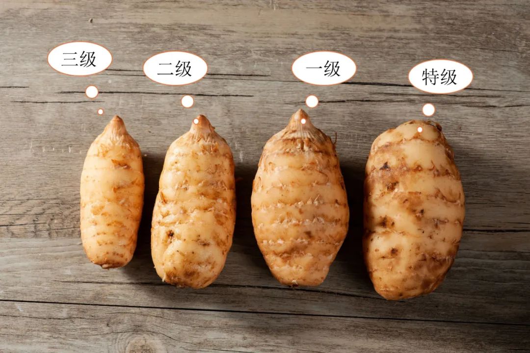 刚出土的天麻上附着厚厚的泥土,泥土下是肥厚圆润的天麻。一个有100克左右,大的有200多克,按照大小分好级。